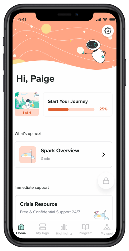 Designed with clinical experts in adolescent depression, SparkRx brings evidence-based treatment to each patient’s smartphone, delivering a multi-week program based on cognitive behavioral therapy (CBT) and behavioral activation protocols.