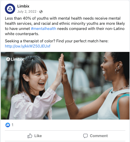 Check out a sample of social copy I produced as Marketing Content Writer at Limbix.